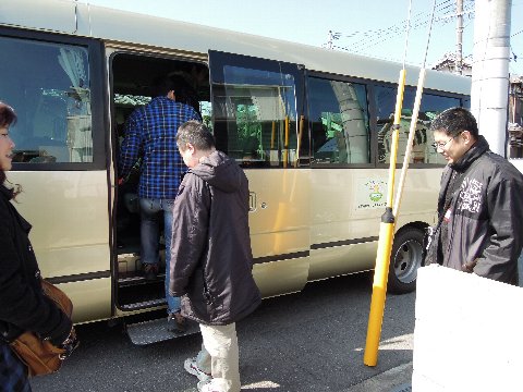 会場まではマイクロバスに乗って移動をします。
