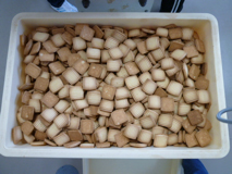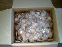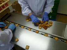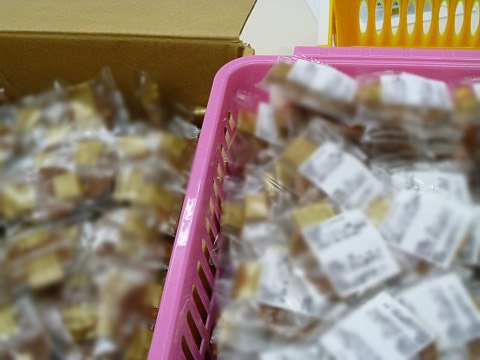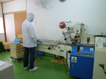 製菓会社さんのおいしい焼きたてクッキーを一枚一枚機械でピロ包装(個別包装)しています。