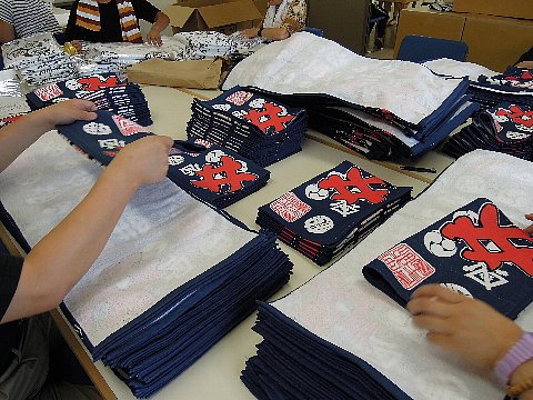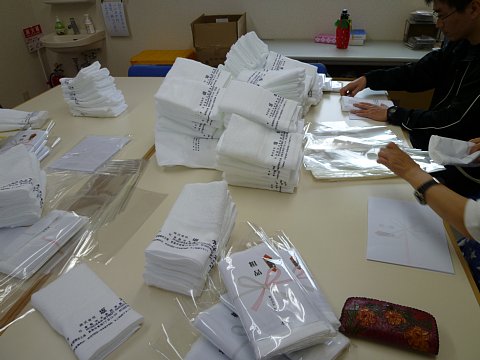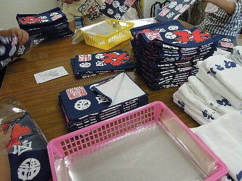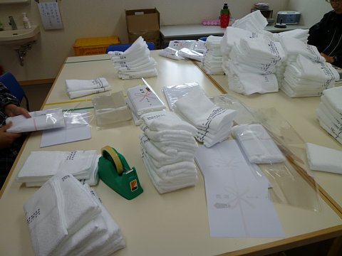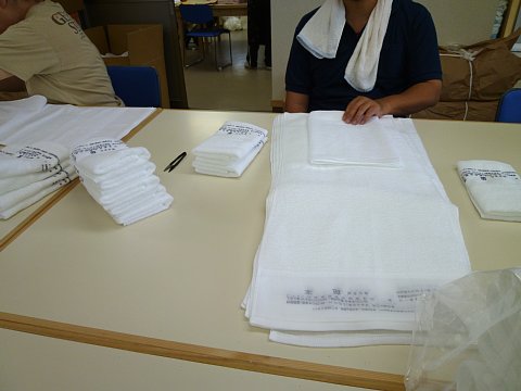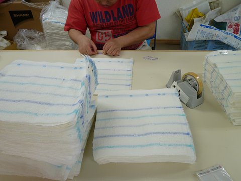 タオル会社から預かったタオルを決められた大きさにたたみます。