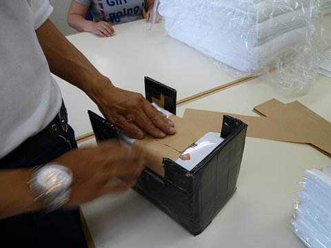 綺麗に束ねてから段ボール箱に入れて完成です。